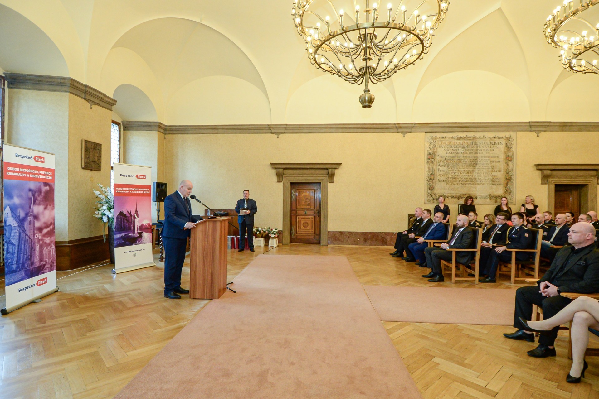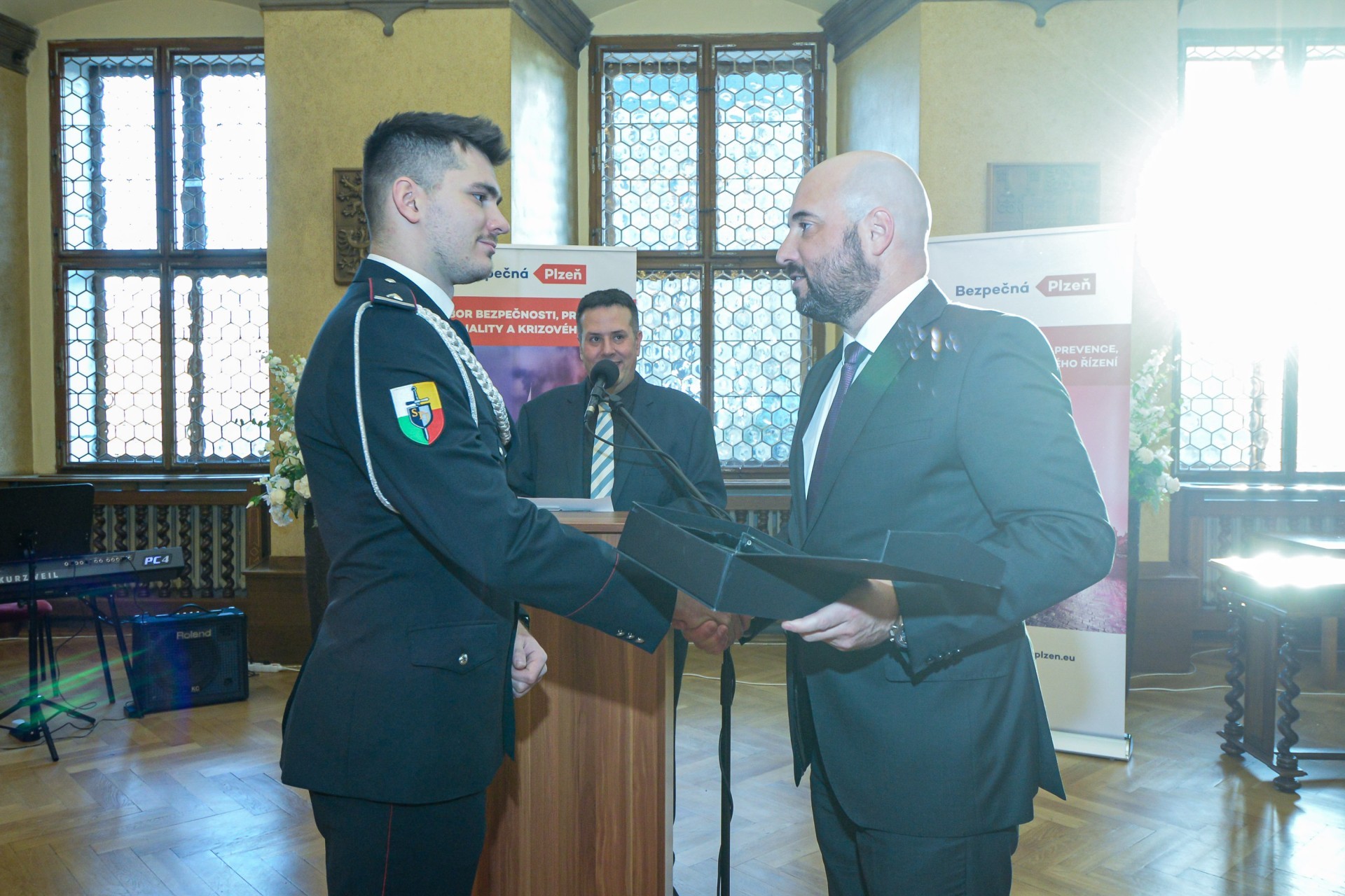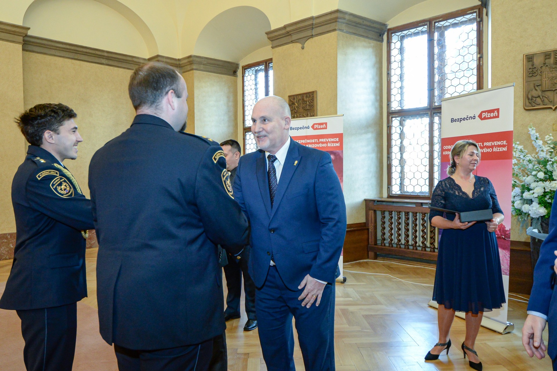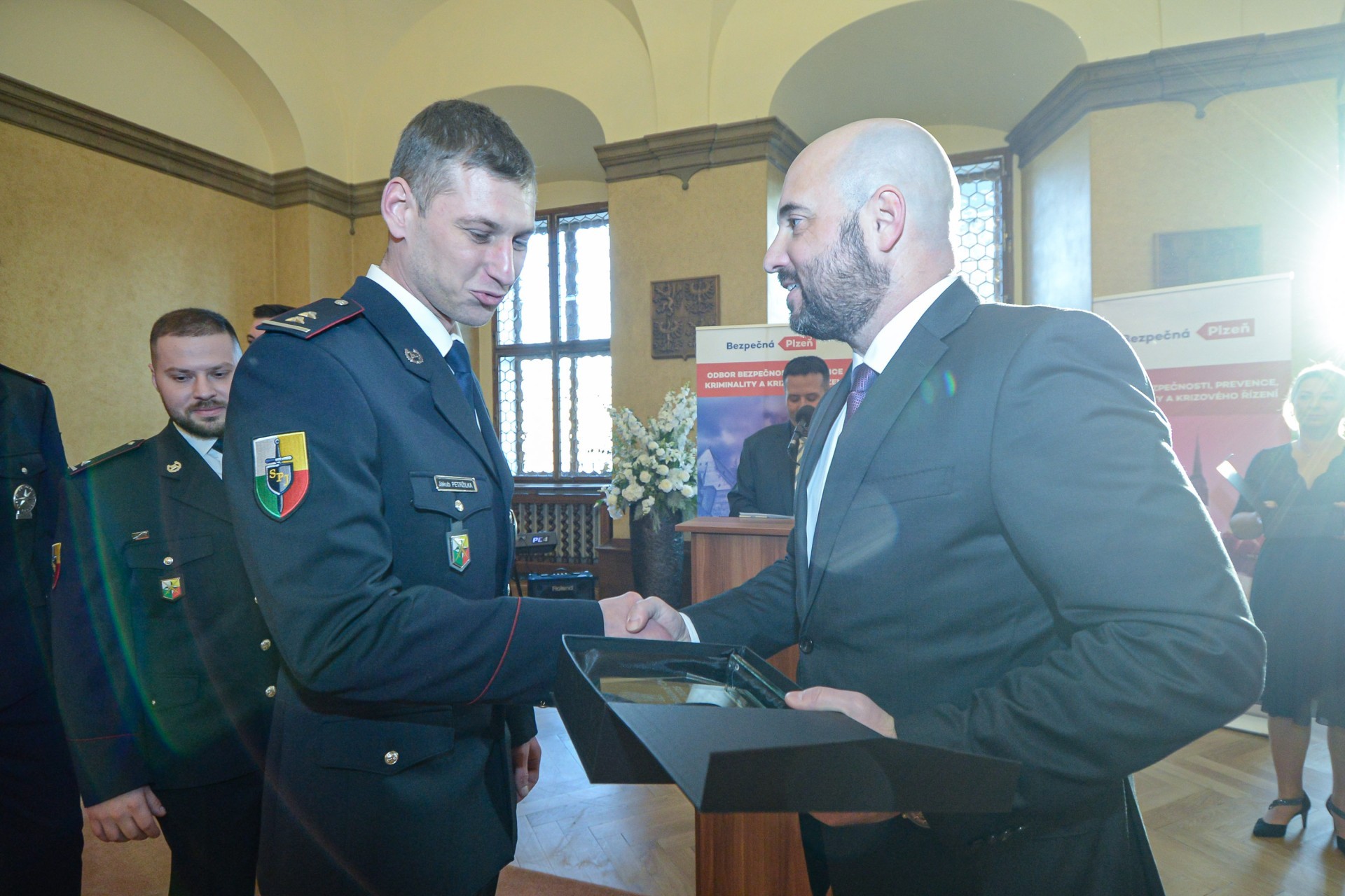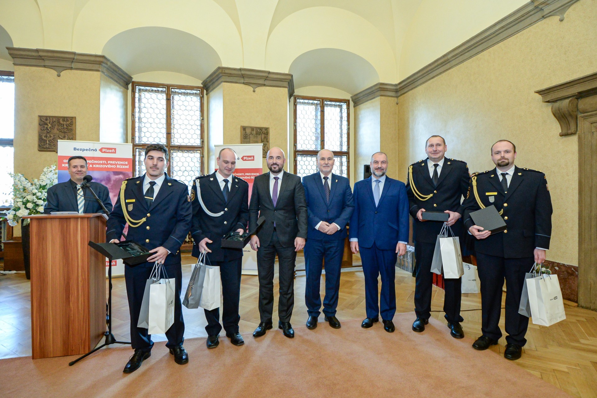 Město Plzeň už po šestnácté ocenilo osobnosti, které v letošním roce vykonaly mimořádné činy při záchraně lidského života a majetku. Pro ocenění si do obřadní síně na plzeňskou radnici ve středu 10. prosince přišli nejen záchranáři, policisté a hasiči, ale také plzeňští strážníci či občané. Ceny převzali z rukou primátora Plzně Romana Zarzyckého, radního pro oblast bezpečnosti a prevence kriminality Tomáše Kotory a Aleše Průši, vedoucího magistrátního odboru bezpečnosti, prevence kriminality a krizového řízení, který událost každoročně pořádá.